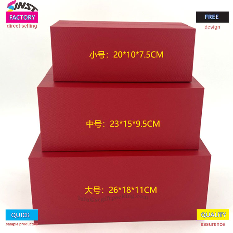 Het openingsontwerp van deze Red Wine Gift Box is erg netjes, met gladde randen en geen gaten bij de opening, die niet gemakkelijk te kraken is en kan worden aangepast voor verschillende stijlen. Het afdrukken is ook heel duidelijk. Sintst Printing and Packaging Company hanteert geavanceerde apparatuur en heeft een kleurenbeheersysteem, dat heldere kleuren produceert met uitstekende visuele effecten. Natuurlijk zijn de details van de geschenkdoos ook zeer perfect, met strakke hoeken en gladde randen, waardoor klanten de meest perfecte kwaliteit presenteren; De onderkant van de geschenkdoos is erg stevig, met goede belastingdragende prestaties, strakke stiksels, doordacht ontwerp en uitgebreide overweging;