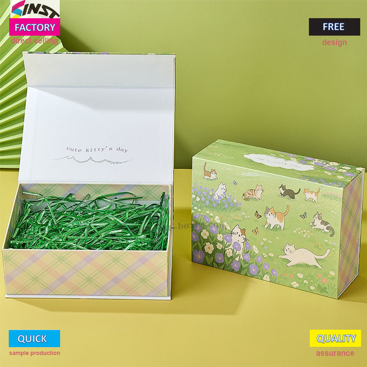 Deze pluchen geschenkdoos met hangende hanger heeft een schattige en helende stijl gecombineerd met lichtgroene en beige geruite patronen, waardoor mensen zich op het eerste gezicht beter voelen. De schattige kat pluche hanger geschenkdoos is gemaakt van dik karton, dat vierkant is en niet gemakkelijk vervormt, en niet verpletterd wordt bij het installeren van pluche hangers of sleutelhangers. De openingsmethode is heel bijzonder, met een flip-design en een groene Lafite-voering, wat een gevoel van ceremonieel geeft bij het openen van cadeaus, zoals het openen van rode enveloppen.