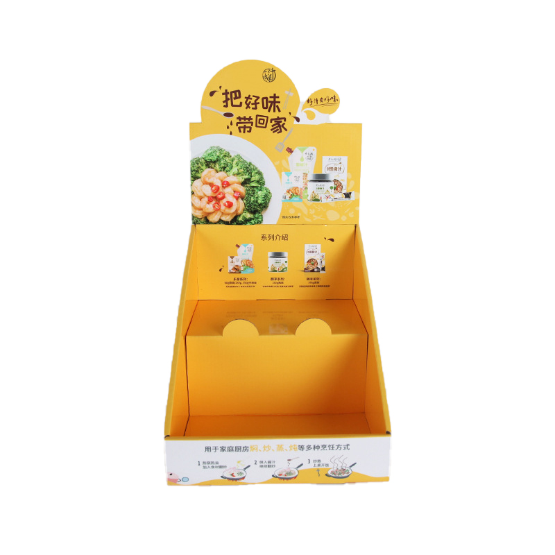 Het displayboxNeemt een hellende gelaagde structuur aan, waarbij elke laag nauwkeurig is verdeeld volgens de gebruiksfrequentie: de bovenste laag bevat gemeenschappelijke kruiden zoals zout, suiker en vers gemalen zwarte peper, terwijl de middelste en onderste lagen gegrilde vleeskruidenpakketten en gestoofde soep ingrediëntenpakketten bevatten. Elke laag wordt gelabeld met opvallende tags en klanten kunnen het doel gemakkelijk in één oogopslag vinden.