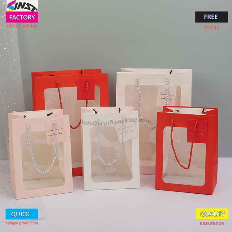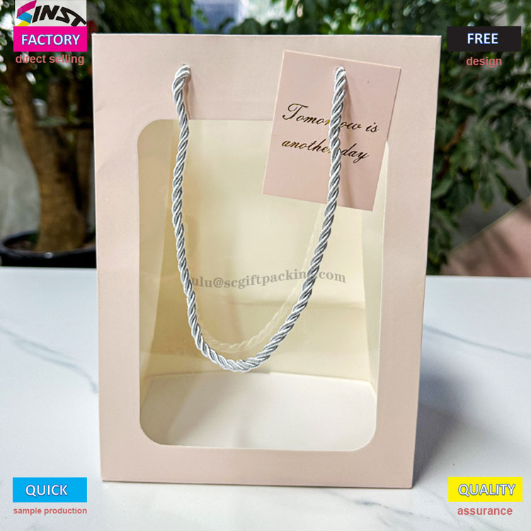 Ben je bang om blinde dozen te openen bij het geven van geschenken? Deze handtas wordt geleverd met een transparant raamontwerp, waardoor het geschenkoverzicht duidelijk kan worden gepresenteerd en een comfortabele grip biedt, waardoor het een visueel hoogtepunt is; Het transparante PVC -raamontwerp kan heerlijke bakcreaties en geschenken zoals cakes, koekjes, macarons, enz. Toonen. De bouquet -raamopening tas kan ook uw prachtige producten presenteren aan familie en vrienden met aangepaste kaarten. Handgeschreven zegeningen vullen onmiddellijk de sfeer met exclusieve ceremonie. Geschenken voor verjaardagen, vakanties en jubilea kunnen worden gegeven met zowel uiterlijk als intentie. Natuurlijk is de bloementaszak ook een goede keuze voor dagelijkse opslag.